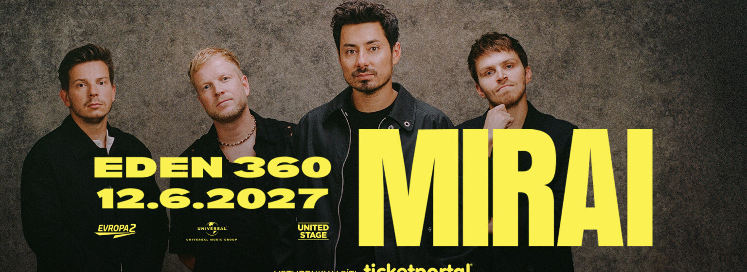 Jedna kapela. Jeden stadion. Jeden večer, na který se nezapomíná.Mirai poprvé zamíří do Edenu – a půjde o největší koncert v jejich kariéře i historii samotného stadionu.V srdci Edenu vyroste 360° stage, která promění koncert v intenzivnější zážitek. Budete mít Mirai opravdu nablízko – ať budete stát kdekoli. Očekávejte stage, jaká tu ještě nestála, speciální hosty a neopakovatelnou atmosféru, kterou zažijete jednou za život.